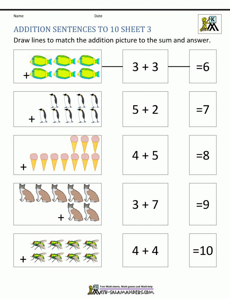 Free Printable Math Addition Worksheets For Kindergarten – Printable worksheets need to be of wonderful usage to all. These are to be used to encourage children and to make your work much easier. These might additionally be made use of to inspire the grownups.