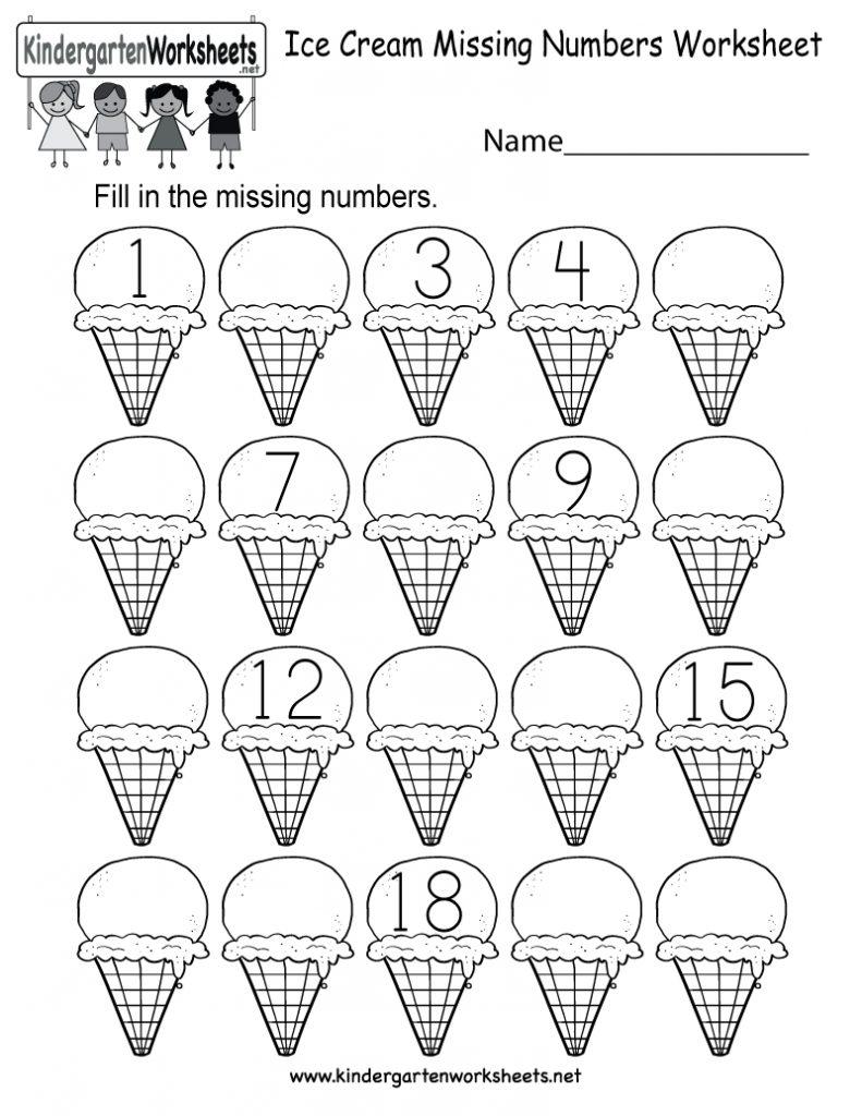 Ice Cream Missing Numbers 1-20 Worksheet For Kindergarten (Free | Free Printable Missing Number Worksheets, Source Image: www.kindergartenworksheets.net