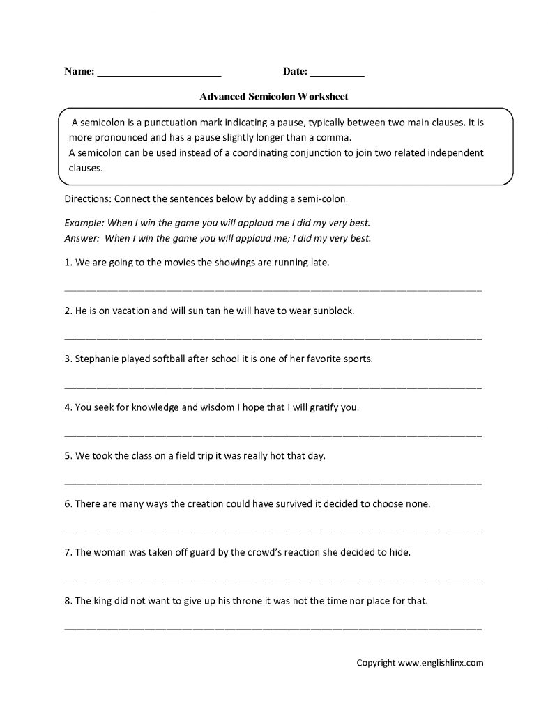 Advanced Semicolon Worksheets | Great English Tools | Punctuation | Free Printable Punctuation Worksheets For Middle School, Source Image: i.pinimg.com