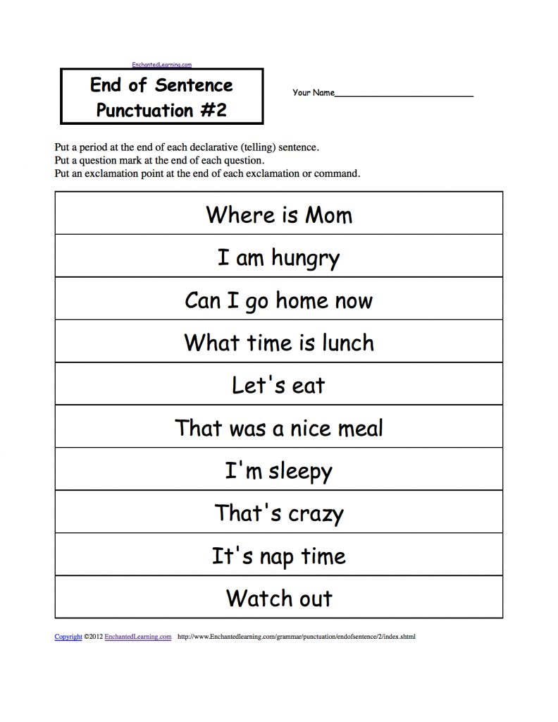 Punctuation Marks: Enchantedlearning | Free Printable Punctuation Worksheets For Middle School