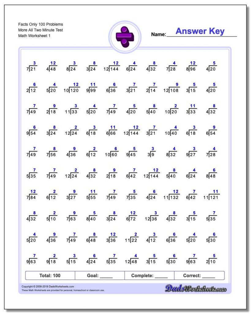 Two Minute Division Worksheets | Mad Minute Division Printable Worksheets, Source Image: www.dadsworksheets.com