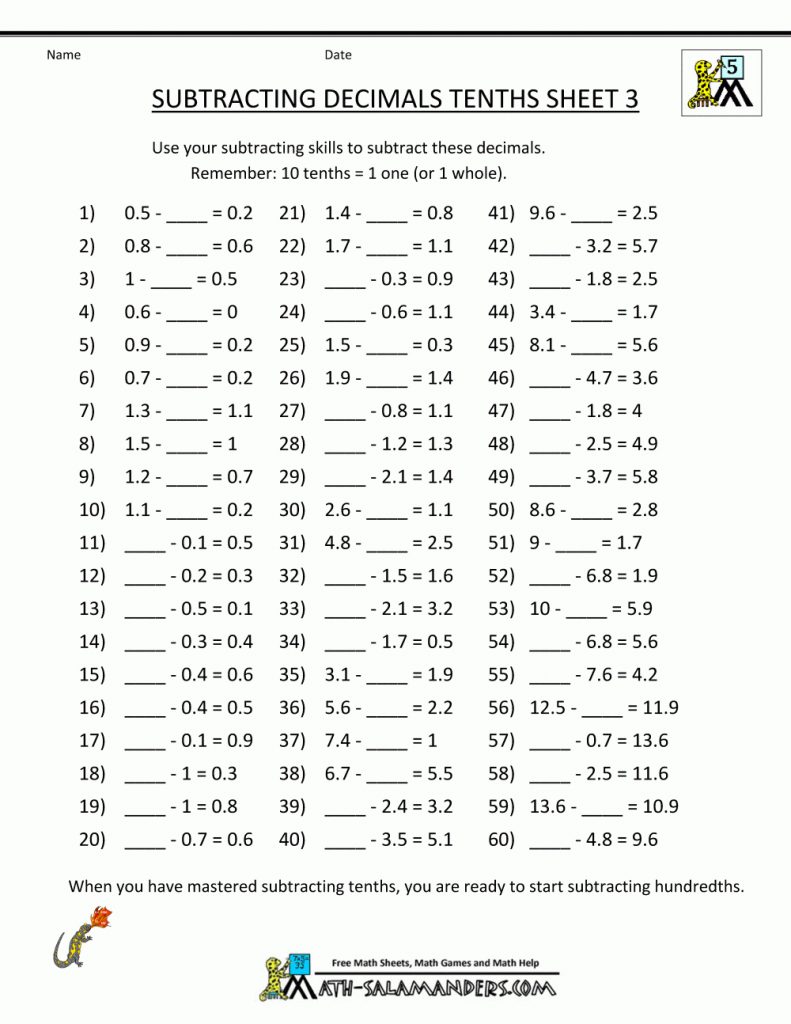 Math Worksheets Decimals Subtraction | Printable Math Worksheets Grade 5, Source Image: www.math-salamanders.com